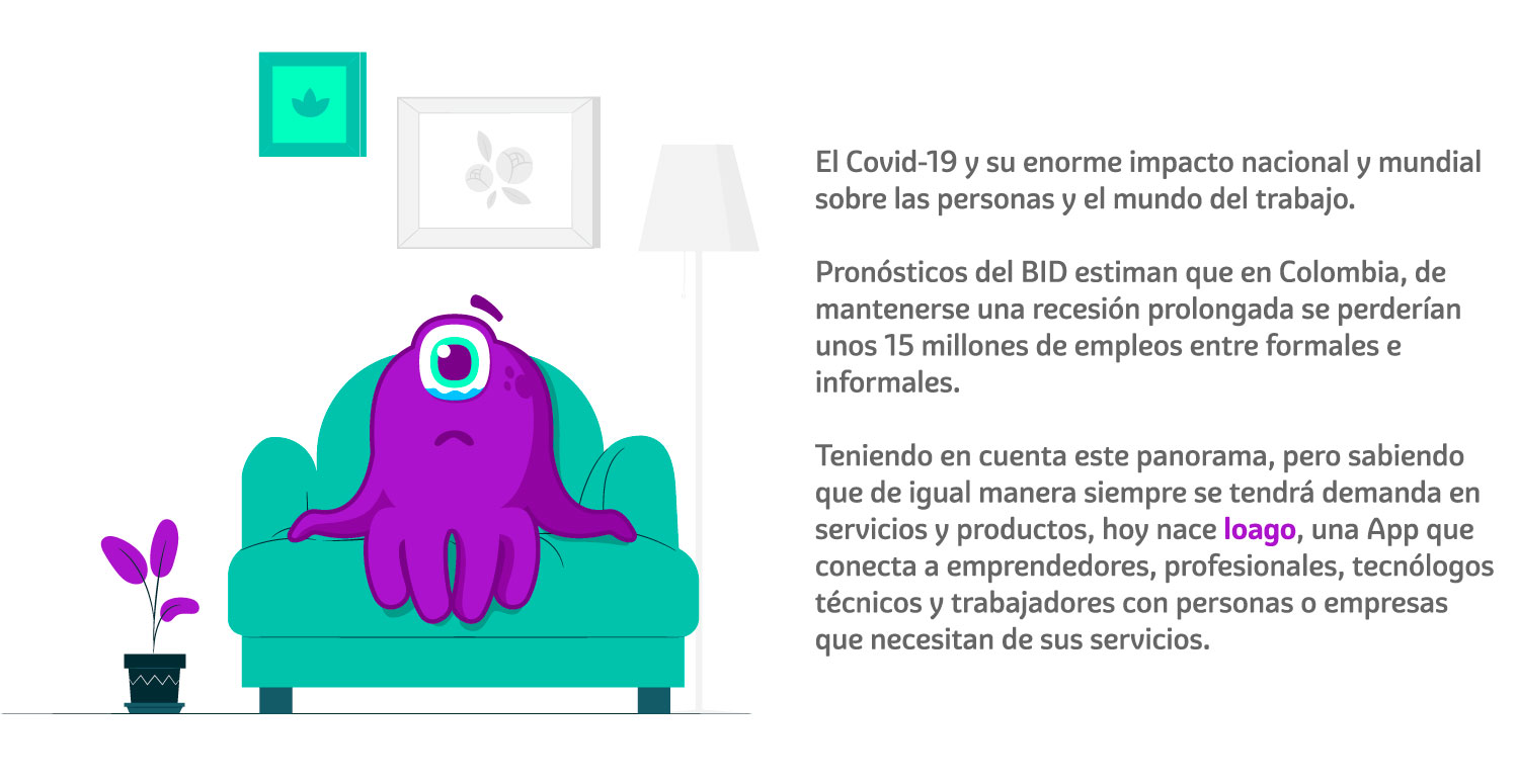 Diseño integral de identidad visual y experiencia de usuario para Loago, una app que conecta emprendedores, técnicos y profesionales con personas o empresas que requieren sus servicios.